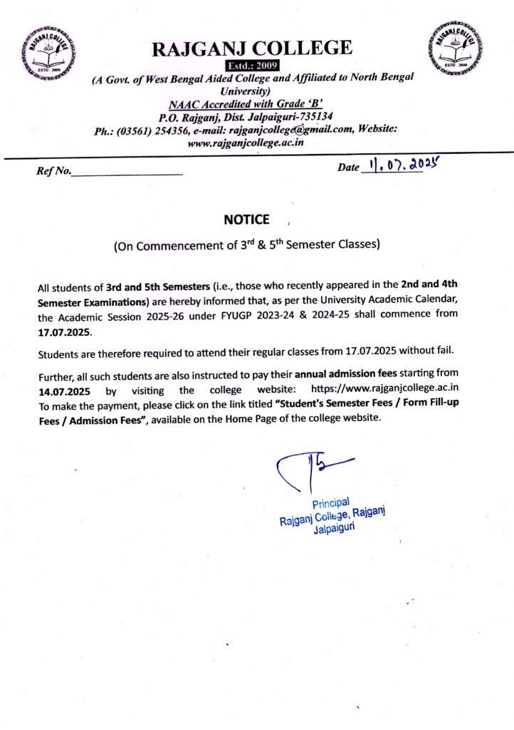3rd & 5th Semester class start notice