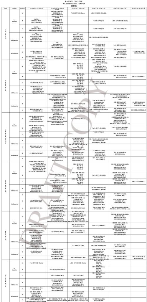 Routine (Draft Copy) For 1st, 3rd & 5th Semester (2023-24)