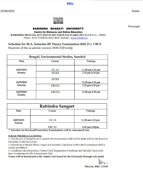 Schedule for m.a. semester-iii theory examination 2021 (for cbcs students of the academic session 2020-21[fresh])