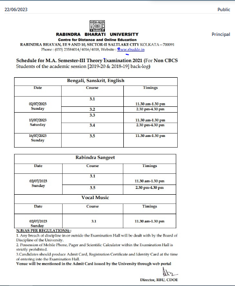 Schedule for m.A. Semester-iii theory examination 2021 (for non cbcs students of the academic session [2019-20 & 2018-19] back-log