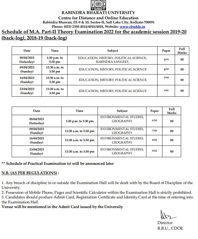 Schedule of M.A. Part-II Theory Examination 2022 for the academic session 2019-20 (back-log), 2018-19 (back-log)